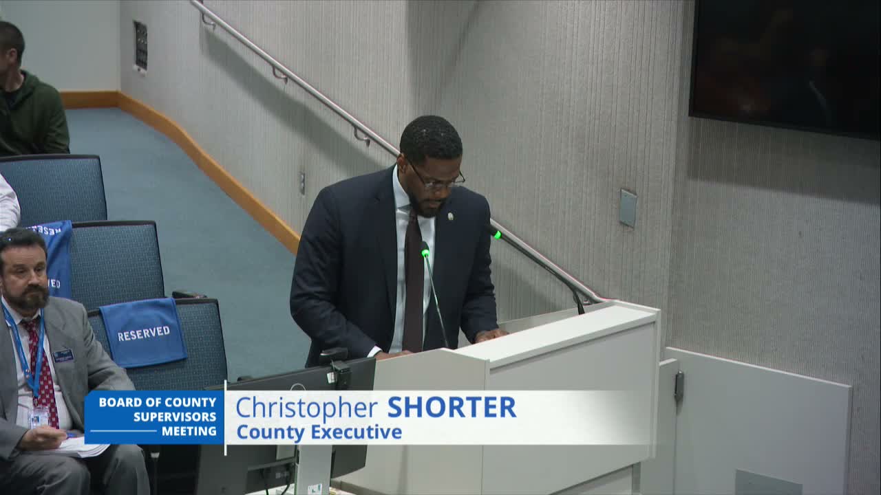 County executive remarks also recognized the Transformation Management Office (TMO) for two years of work modernizing permitting, planning and project delivery, announced leadership transitions in TMO, and listed several directives for staff across departments on issues ranging from towing and noise ordinances to identifying land for a county‑operated community recreation center and an agricultural and forest reserve.