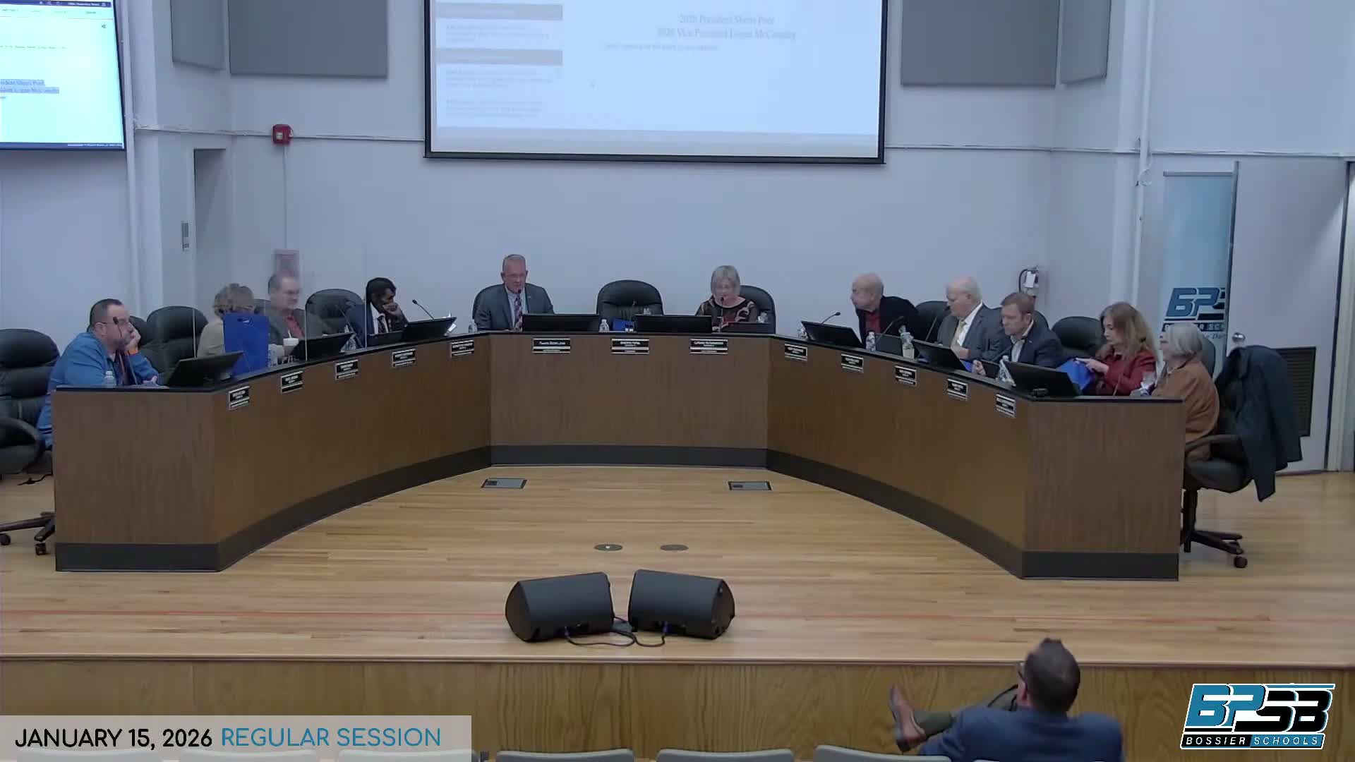 The meeting also included tributes and local recognitions: the communications office highlighted that seventh-grade teacher April Miles received a statewide award for innovative use of technology, and School Resource Officer Deputy Colton Hunter was honored as a gold-star employee in a recognition sponsored by Bossier Federal Credit Union.