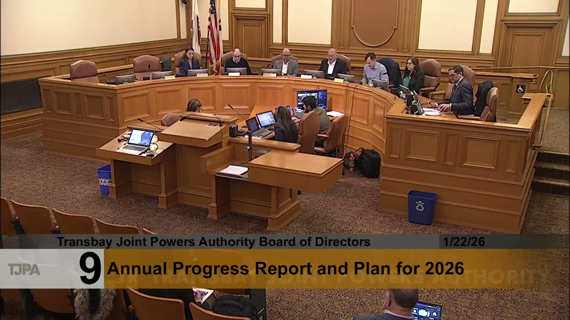 The Transbay Joint Powers Authority board on Jan. 22 approved a preliminary operating projection for fiscal year 2026–27 totaling approximately $29.2 million, with staff citing stronger projected operating resources and revenue growth that reduce the contribution required from transit operators.