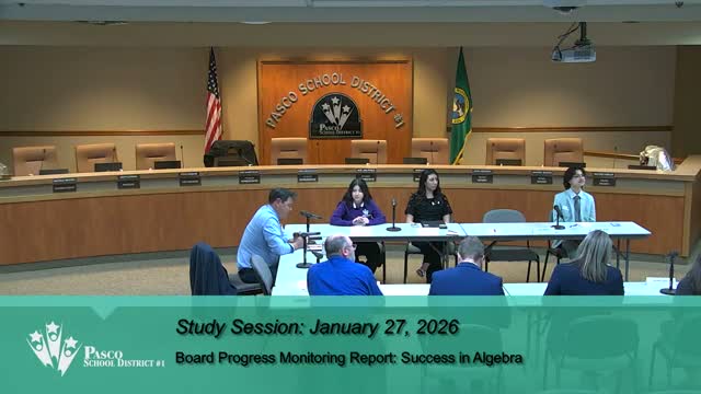 Superintendent Whitney told the Pasco School District Board of Directors at a study session that the district is using a new tiered approach to measure "significant improvement" in student math outcomes and reported modest gains in algebra completion.