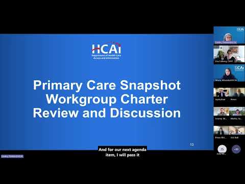 The Office of Healthcare Affordability (OCA), housed within the Department of Health Care Access and Information (HCAI), presented proposed measures for a statewide Primary Care Snapshot and sought work‑group feedback on a draft charter and indicator criteria.