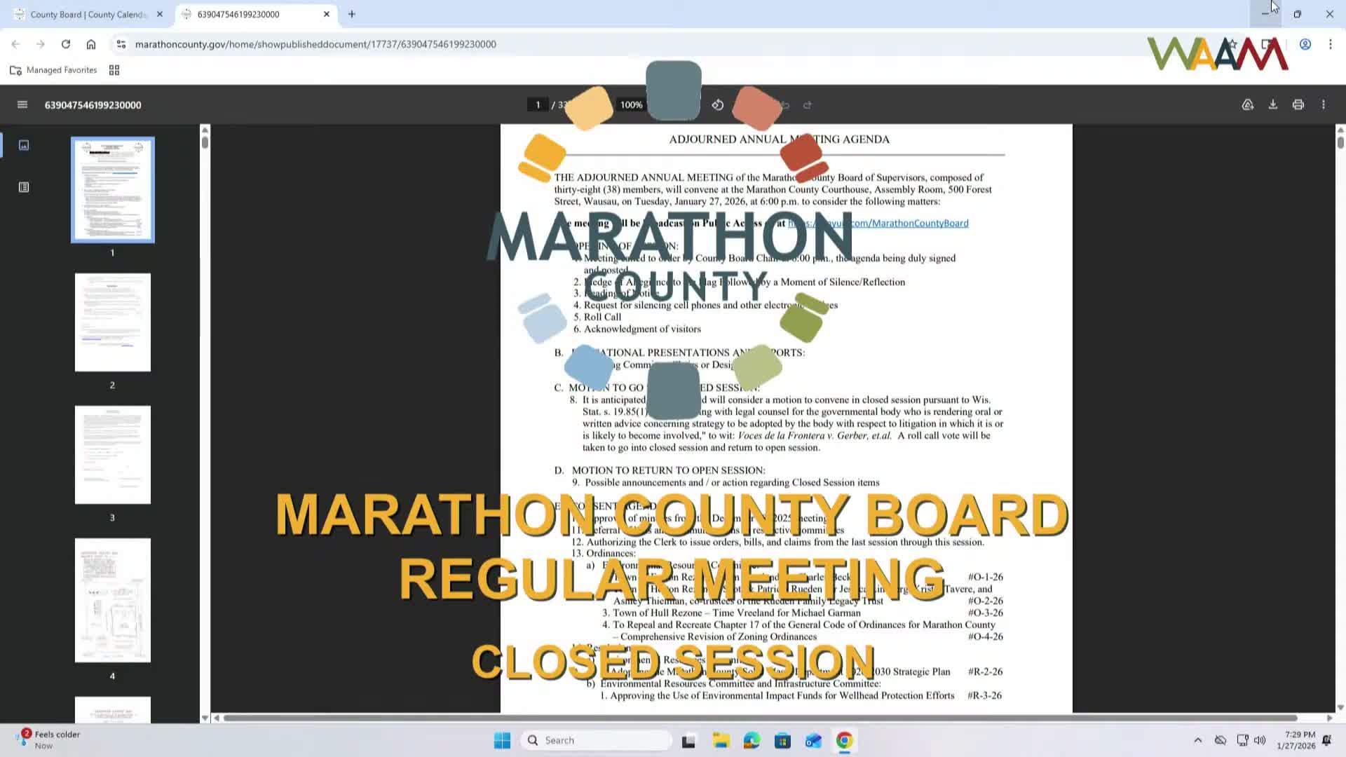 At its meeting, the Marathon County Board recorded the following formal actions and outcomes: