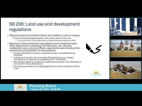 Next steps: The Planning Board's recommendation goes to the St. Pete Beach City Commission for final action. The ordinance packet and staff responses to the stakeholder meeting noted in the hearing will be provided to the commission for their review.