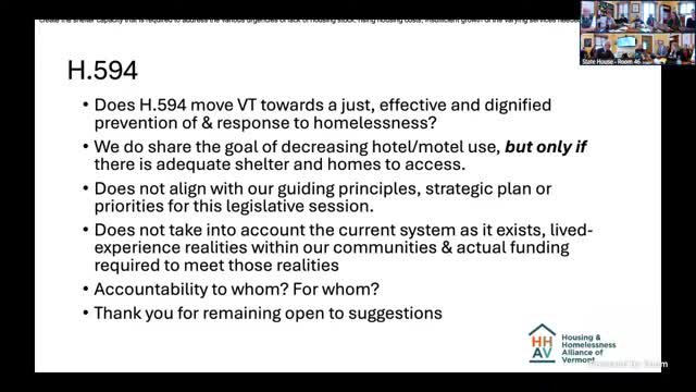 Providers from across Vermont urged the House Committee on Human Services to amend H.594 so reductions in General Assistance motel placements occur only after replacement shelter capacity and onsite supportive services are available.