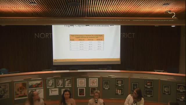 Northshore staff told the board that changes to kindergarten screening and a new math assessment reduced identification rates for highly capable services and that special-education enrollment rose post‑COVID; staff said they are investigating category-level drivers and will report back.