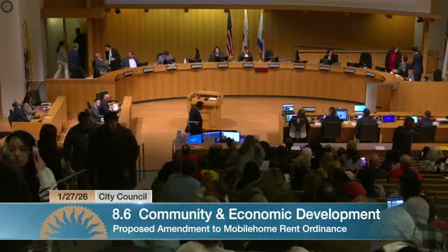 After hours of public comment from hundreds of mobile‑home residents and park owners, the council voted to delay broad changes to the Mobile Home Rent Ordinance and directed staff to convene joint meetings and analyze the resale step increase's effect before returning with options.