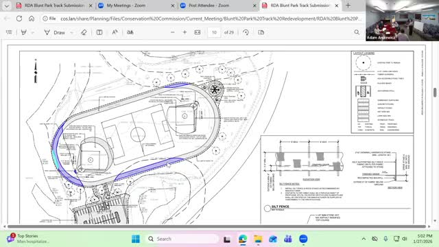 Several commissioners debated whether the existing compacted stone-dust should be treated as effectively impervious; one commissioner said paving will increase impervious surface but argued "the public benefit outweighs" runoff concerns given the track's narrow width (speakers estimated 6–10 feet). Another participant said loose stones currently wash into adjacent wetland areas and that pavement could reduce stone migration: "the macadam actually, in this case ... is probably better than the compacted stones."