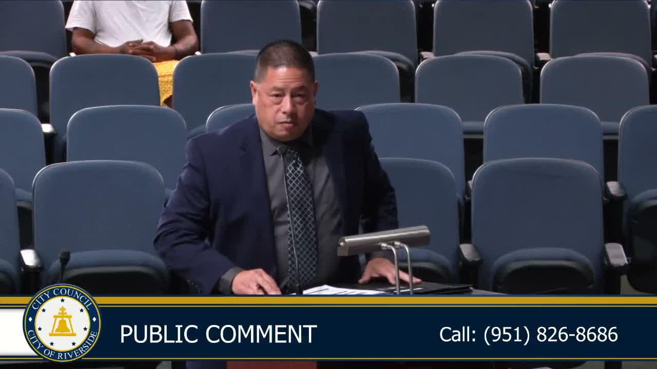 Public Parking Services Manager Eric Lu told the council the Park Riverside valet pilot resulted from a competitive RFP (No. 2452) and a five‑member evaluation panel that "unanimously recommended ACE as the award" to operate a Friday‑through‑Sunday valet service. The contract recommended by staff is $334,597 for Jan. 1–June 30, 2026, with two one‑year extensions possible.