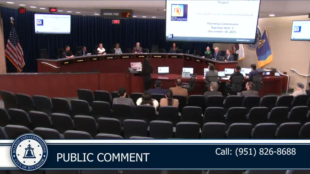 The Riverside Planning Commission voted to recommend approval of PR2021‑001114 on Dec. 18, advancing a proposal to build a 117‑unit multifamily complex on a 4.54‑acre site.