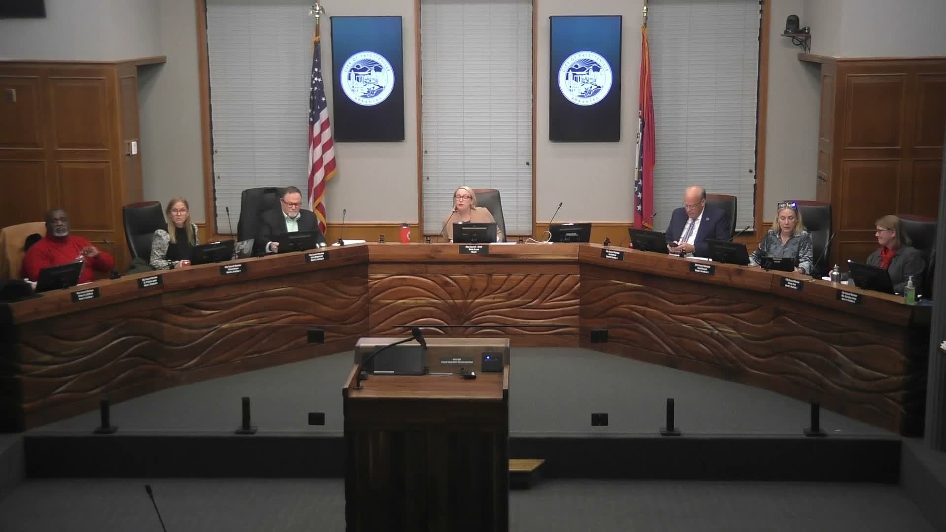 Fayetteville City Council held an extended hearing on RZN 2025-48, a request to rezone about 26.7 acres near North Marks Mill Lane from RSF‑4/Urban Corridor to P‑1 institutional to allow a new junior‑high campus. Staff and the school district defended site suitability; neighbors and environmental groups pressed questions on traffic, geotechnical risks, canopy loss and emergency access. Council left the matter on second reading and asked for additional traffic, geotechnical and FEMA/floodway information before Dec. 16.