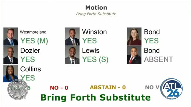 Other approvals included acceptance of an Atlanta Regional Commission surface transportation block grant award not to exceed $16,970,000 for Atlanta BeltLine Northeast Segment 3; a retroactive $100,000 placemaking grant for English Avenue intersection improvements; a USDA Child and Adult Care Food Program reimbursement grant account up to $634,500 for after-school meals; and a property acquisition (approximately 2.61 acres at 2170 Old Georgia Terrace) not to exceed $231,713.46 for Riverwalk Park expansion. Several consent items for Parks and Recreation senior programming renewals and computer instruction were also approved.