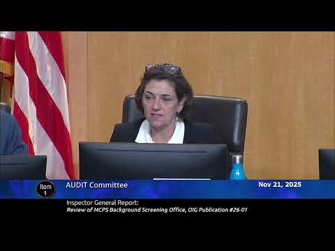 Montgomery County Audit Committee members on Nov. 10 received a 90‑day status update on background‑screening reforms at Montgomery County Public Schools (MCPS), where school and county officials described progress clearing a paper child‑protective‑services backlog and accelerating fingerprint‑based rescreening while the Office of the Inspector General left several recommendations open.