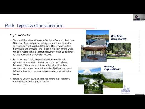 Spokane County planning staff on a recorded lunchtime briefing outlined how the parks and open space element will fit into the county’s Comprehensive Plan 2046 and described park classifications, funding sources and level-of-service standards.