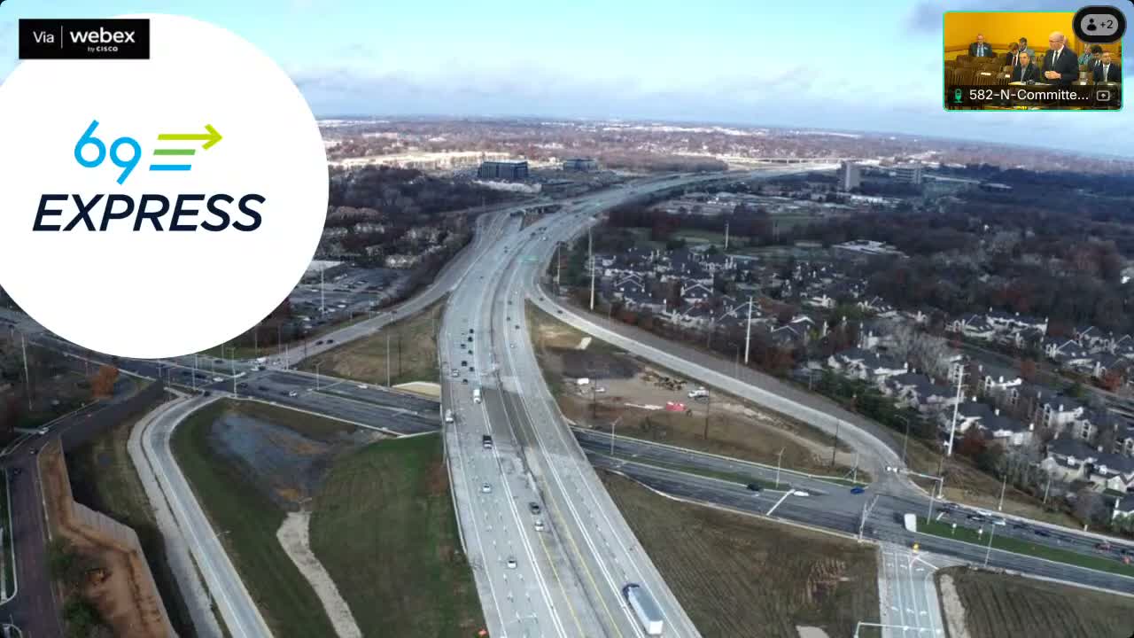 Secretary Reid told legislators US-69 express ($570M) nears completion with toll testing, the Pulte Quincy Viaduct in Topeka is under construction (expected 2027), and KDOT has issued an RFP for the canal-route planning (potentially >$1 billion); members pressed KDOT on tree mitigation, transit for the World Cup and right-of-way/timing issues.