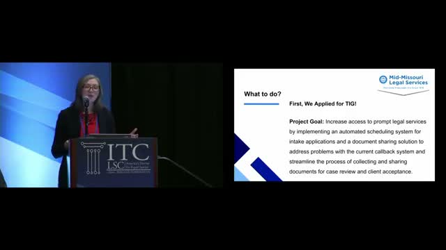 Mid Missouri Legal Services piloted an online intake that uses AI to classify legal problems (mapped to LegalServer problem codes), includes informed opt-in for AI use, and couples intake with automated scheduling to reduce failed callback attempts and increase completed intakes.