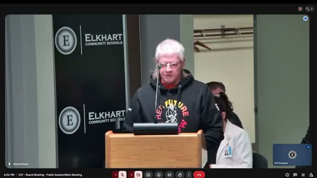 The Elkhart Community Schools board voted unanimously to approve the superintendent and deputy superintendent contracts taking effect July 1, 2026; a public commenter criticized the proposed superintendent salary and automatic contract extension during the public hearing.