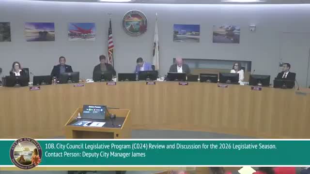 At the meeting, Deputy City Manager Mike James and the council’s Sacramento lobbyist, Jonathan Clay, framed the annual review as an effort to align the city’s legislative guidance with its general plan and strategic priorities. The item drew an unusually large public turnout: roughly 20 speakers concentrated on the draft’s treatment of gun‑violence prevention, language about inclusivity, and references to federal enforcement and climate policy.