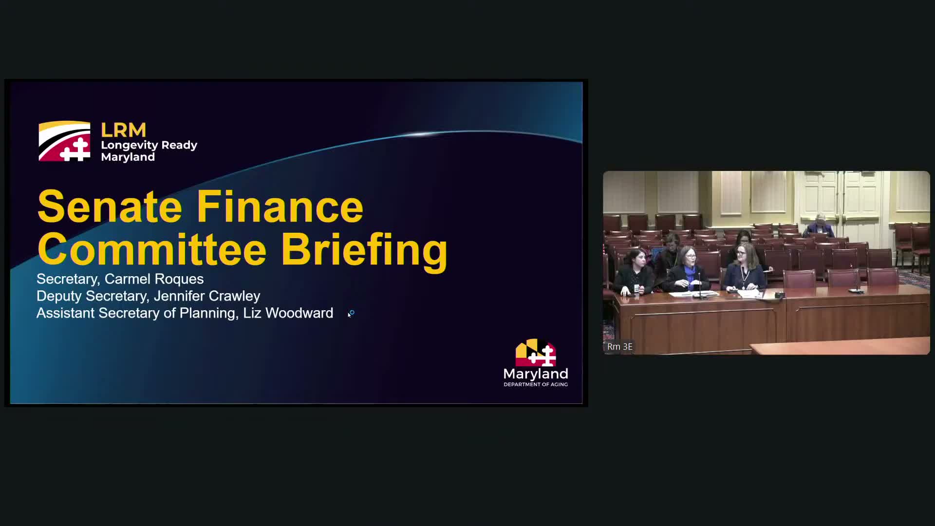 ANNAPOLIS — The Finance Committee on Wednesday heard a briefing from Secretary Rokes of the Maryland Department of Aging on "Longevity Ready Maryland," a 10-year, multisector plan the department says will prepare the state for a rapidly aging population.