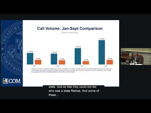 "We need more people to answer the phones. We need more people to be in our offices. We need more people to work CRM cases," the comptroller said, describing a spike in contacts and noting the office's new CRM and virtual branch appointments. The office reported more than 2.4 million calls between January and September 2025, up from about 1.7 million in the same period the prior year, and said improvements in call tracking make current counts more accurate.
