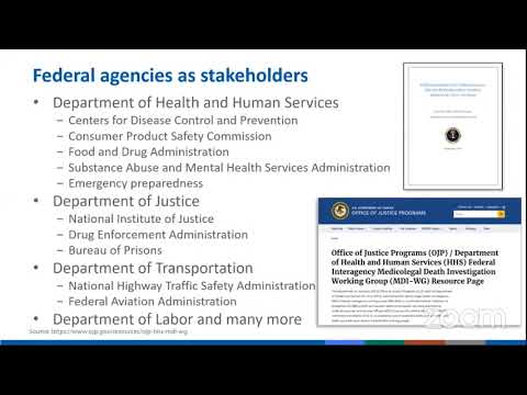 Margaret Warner of the National Center for Health Statistics told an FTCoE webinar that better data standards, APIs and interoperable systems (HL7/FHIR) can make medical-examiner and coroner data timelier and more useful for public health, safety and resource planning. She highlighted provisional overdose counts and described federal data systems that rely on MDI data.