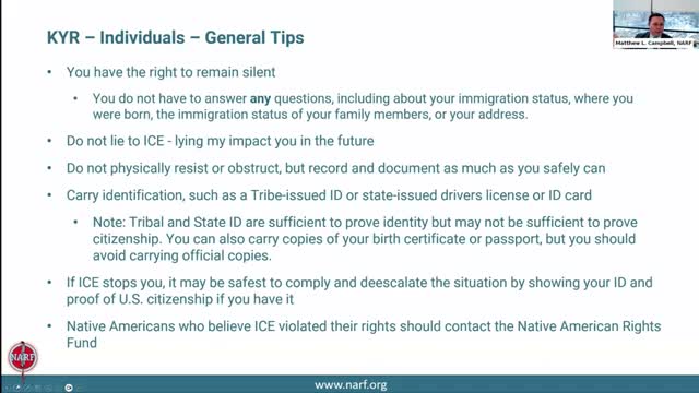 NCAI, NARF webinar: Tribal citizens told how to protect themselves during ICE encounters