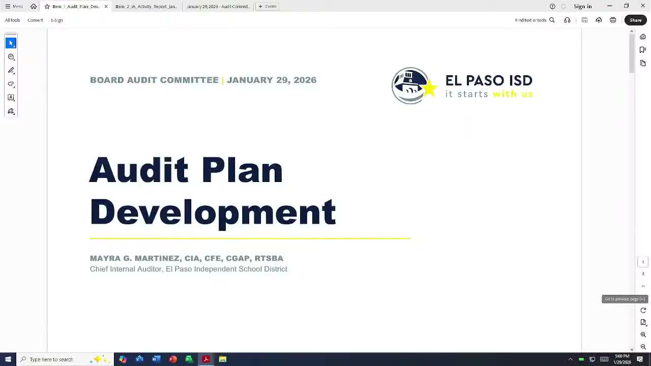 El Paso ISD internal audit outlines risk‑based plan, adds cybersecurity to priorities