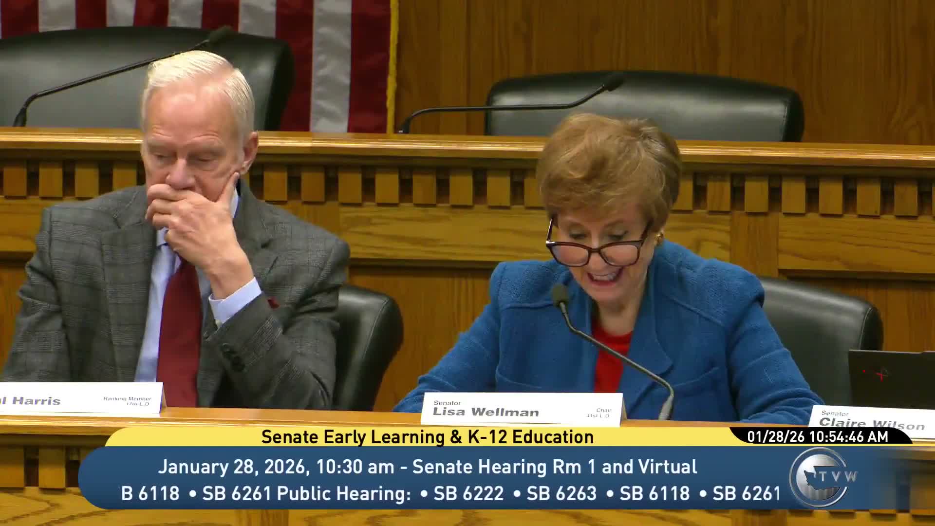 The committee heard SB 6,261, which would require parents who do not enroll a child in public/private school at age 6 to file an annual signed declaration of educational intent; supporters say it aligns Washington with other states and helps planning, while many homeschool families called the bill intrusive and burdensome.