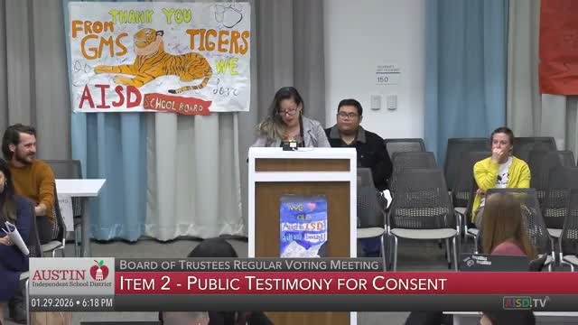 The Austin ISD Board of Trustees on Jan. 29 approved, by a 4–3 vote, authorization for the superintendent to negotiate and execute a contract to sell the former Brookside property (agenda item 11.6) after extended public comment from neighborhood residents and substantial trustee discussion.