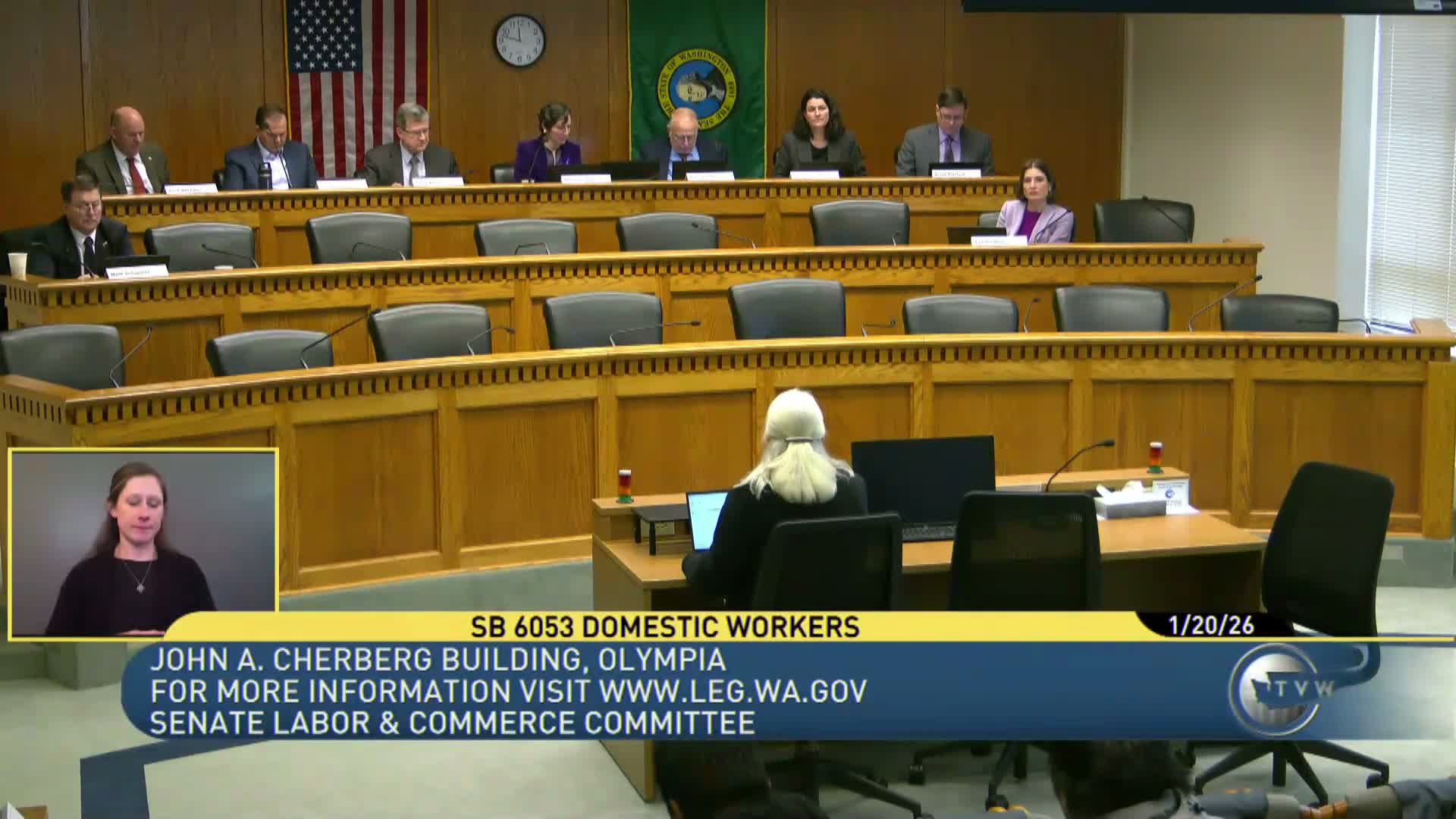 SB 60 53 would extend minimum wage, overtime, written‑agreement and anti‑discrimination protections to many domestic workers. Supporters cited Seattle's experience; Department of Labor & Industries said it would need time and resources to implement and suggested technical amendments.