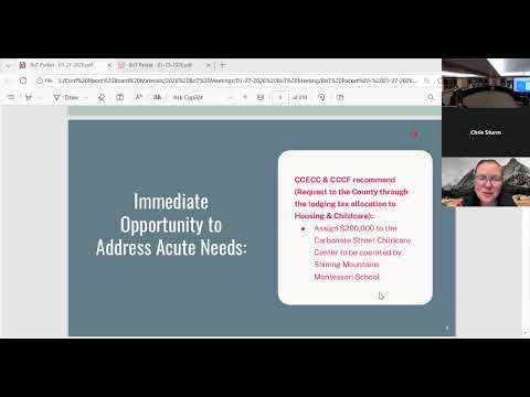 Shining Mountain Montessori presented a plan to operate a 4,600 sq ft Carbonate Street childcare center that would add 48 infant/toddler/preschool slots and about 12 staff; presenters asked the county for roughly $200,000 operating support and noted $1,286,000 in community project funding tied to the site.