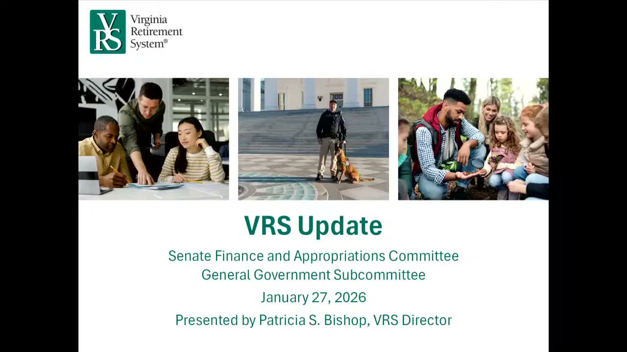 Trish Bishop, director of the Virginia Retirement System, told the Senate general government subcommittee that VRS serves nearly 860,000 members — about 375,000 active employees and roughly 250,000 retirees — and that investment returns have improved the system’s funding position.