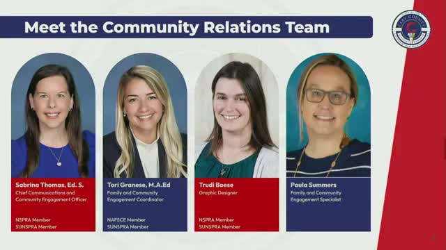 Board members supported the focus on user‑friendly materials, micro‑targeted outreach for specific grades or program types, and emerging metrics showing early engagement with the district's digital tools. The board gave consensus to allow staff to continue refining community standards and communication materials.