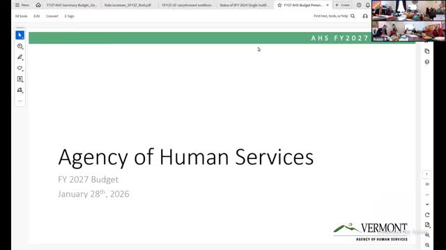 Secretary Jenny Samuelson told the House committee that the Agency of Human Services’ proposed $3.75 billion budget includes an $86.1 million (6.1%) increase to maintain current services, about $9.9 million in program reductions across roughly 38 programs, and investments to expand shelter capacity and support Medicaid priorities.