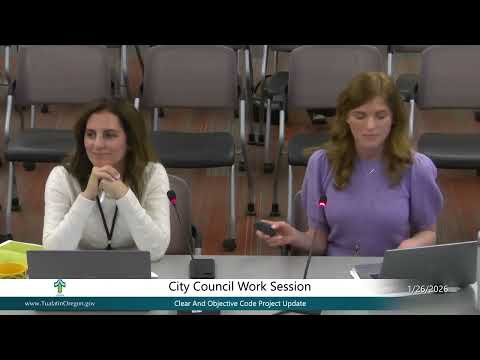 City planners briefed the Jan. 26 council on a state‑mandated "clear and objective" update to the Tualatin Development Code. Council generally concurred with the Planning Commission to pilot a staff‑level adjustment process for multifamily standards and directed staff to return with draft amendments in late spring/early summer.