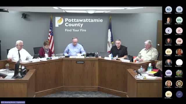 Presenters said the company hopes to prepare a staging area and potentially begin work in February, though that schedule is tentative. County staff described the portion of the project inside Pottawattamie County as roughly 1.53 miles long (a speaker initially cited 5.53 miles and then corrected to 1.53 during the discussion) with an 8-inch pipeline in the county and a 24-inch crossing under the river in Mills County. The county’s permitting valuation for construction in-county was described as approximately $20 million, based on figures submitted by the company and verified against building valuation charts.