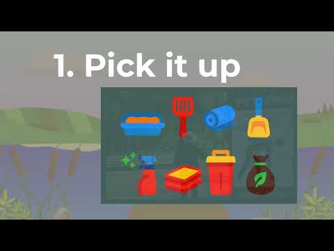 The presenter gave practical steps for handling pet waste: use a plastic bag or scooper; slip the bag over a gloved hand, grab the waste, turn the bag inside out, tie it shut and place the bag in a trash bin. The message advised against flushing pet waste or leaving it on sidewalks and trails and suggested using designated pet-waste bins in parks when available. The presenter closed by encouraging listeners to share the guidance with neighbors and family to help protect the county's waterways.