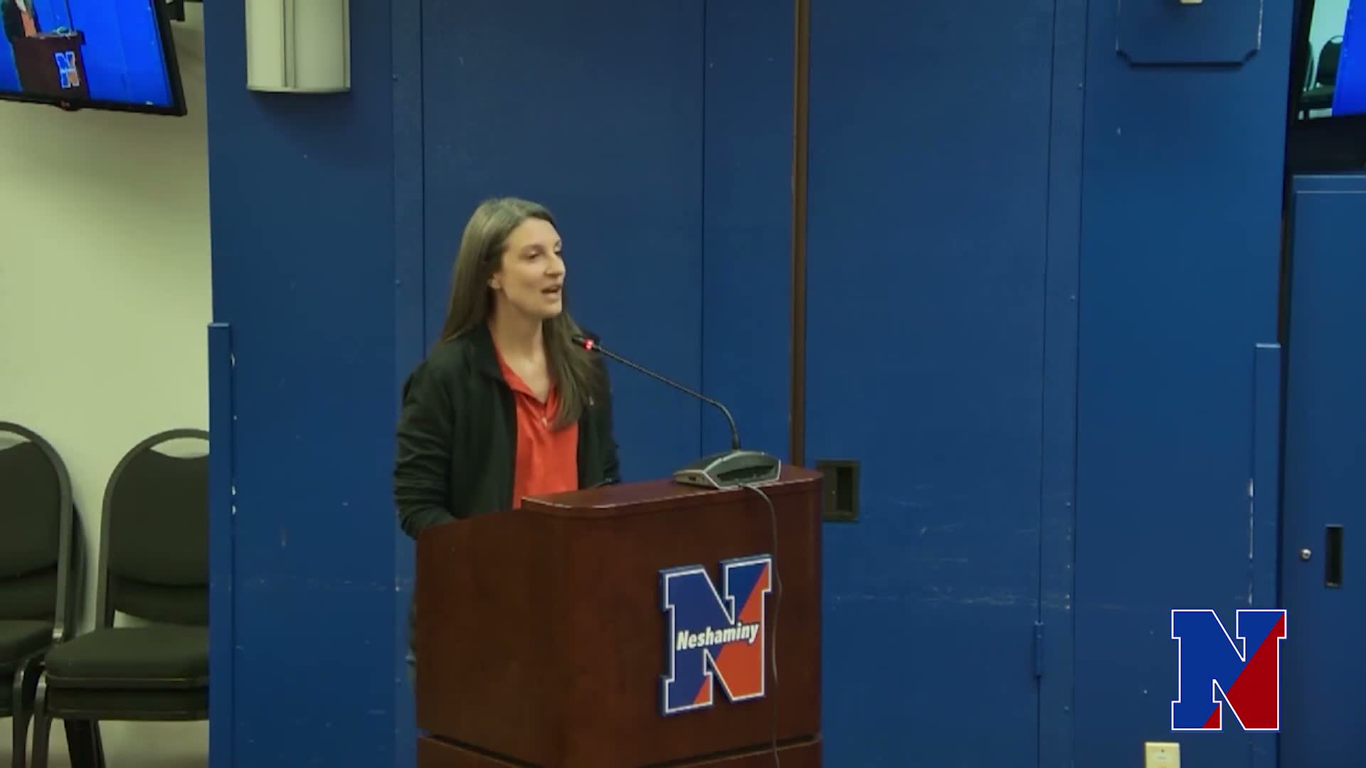 Maria Salander, a lifelong Neshaminy School District resident and a middle-school educator with 20 years’ experience, addressed the board during public comment to oppose a proposed change to align fifth-grade schedules with grades six through eight.