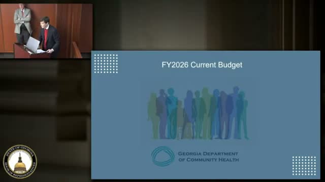 The Georgia Department of Community Health told the House appropriations subcommittee that Medicaid accounts for roughly 97% of its budget and outlined the governor's amended-FY26 proposals including one-time $2,000 staff supplements, Katie Beckett salary backfill, a proposed 1915 waiver to fund caregiver respite, and a $35 million IES modernization request.