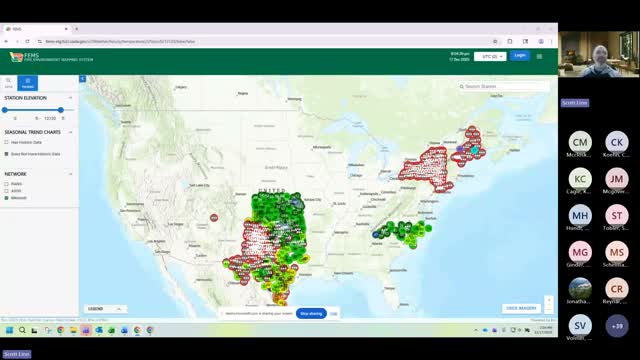 Scott also demonstrated new map filters, including a 'has historic data' option and network filters (ROS, ASOS, MesoNets), intended to help users find stations with seasonal-trend charts. He said FEMs will ingest an extended POR (a cleaned dataset for 2023–2024 up to 11/01/2025) and perform recalculations so more stations meet the three-year POR threshold back to 2022. The presenter cautioned that the team described several version numbers during the call (references to "3.6" and "3.5" appeared), and sequencing was not fully clarified in places.