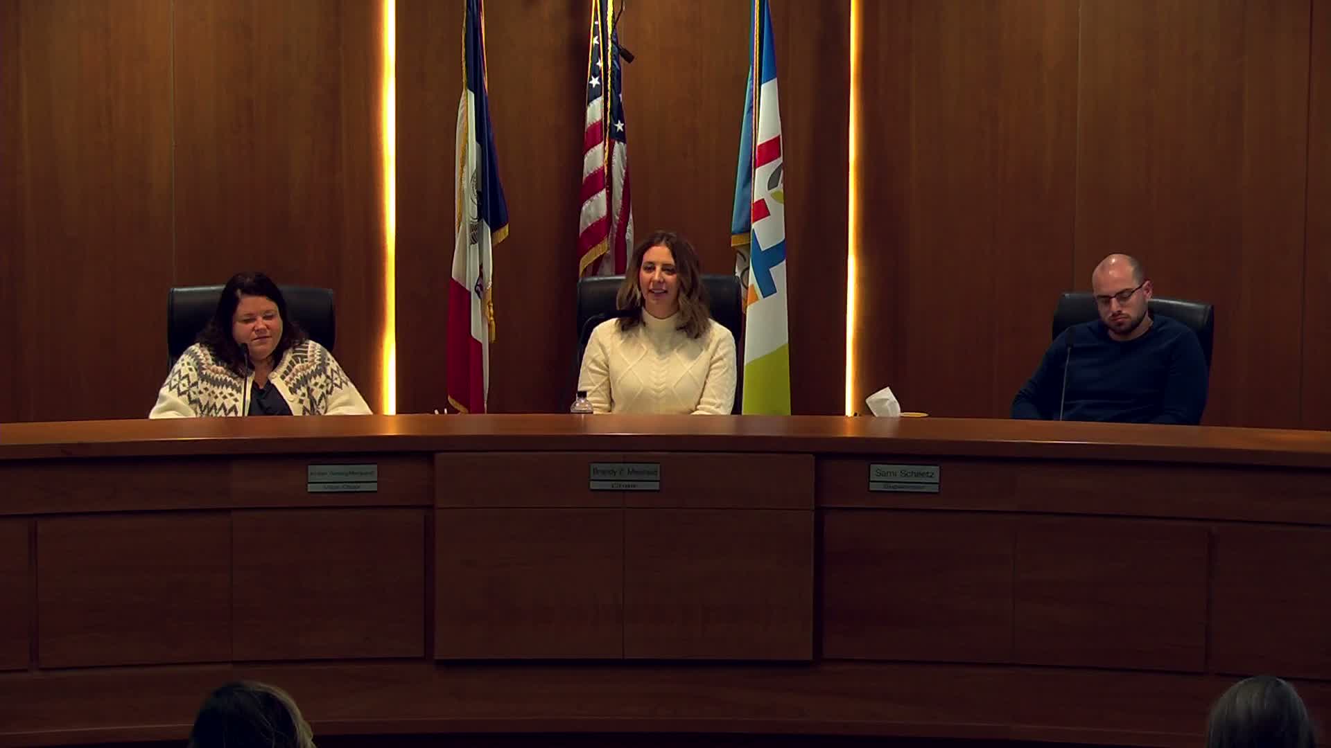 Kara, representing Linn County's sustainability department, presented the department's mission and three key performance indicators and walked supervisors through recent grants, partnerships and planned initiatives as the board considered the department's FY27 appropriation.