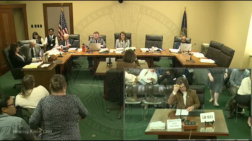 LB921, patterned on Iowa law, would require employers to notify workers and the Department of Labor in mass layoffs or closures affecting 25 or more full-time employees (60 days notice proposed, floor amendment would extend to 90); Lexington community members urged stronger notice, access to policies, privacy protections, and possible severance, while business groups warned about burdens on small employers.