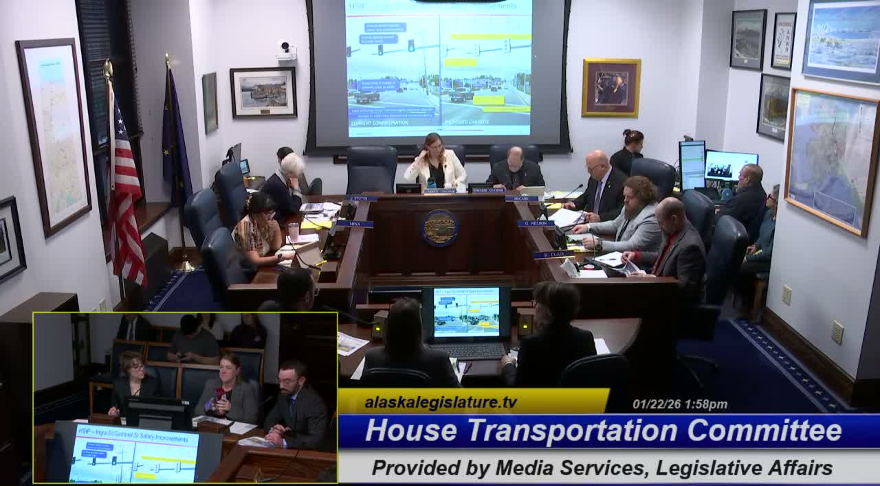Alaska Department of Transportation staff used a Jan. 22 House Transportation Committee briefing to outline a series of pedestrian and roadway safety projects across the state, from Anchorage corridor improvements to pilots in Kodiak and modernization work in Fairbanks and other regions.