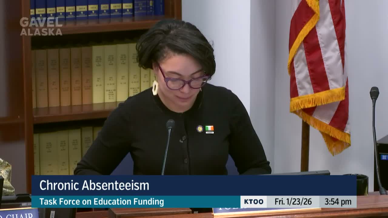 National and state researchers told the legislative task force that chronic absence—defined as missing 10% or more of school—rose sharply during the pandemic and remains high in Alaska (about 43% statewide), and recommended prevention, better attendance data, and community‑led supports rather than punitive sanctions.