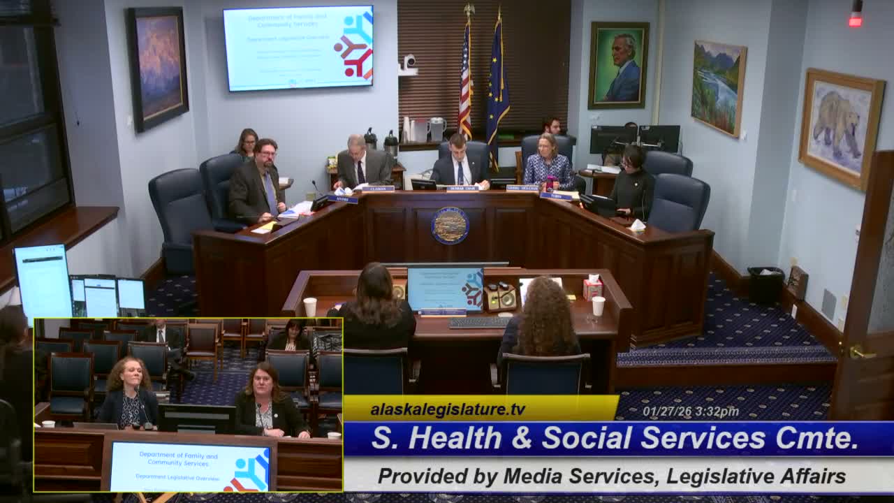 Acting Commissioner Tracy Dompling told the Senate Health and Social Services Committee that staffing is the primary constraint across Alaska Pioneer Homes, Alaska Psychiatric Institute and juvenile facilities; DFCS plans a CNA-to-LPN apprenticeship, EHR rollout at API and targeted facility renovations while reporting modest improvements in child-welfare reunifications.