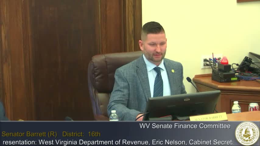Secretary Eric Nelson presented the Department of Revenue’s five‑year budget overview to the West Virginia Senate Finance Committee, describing steady liquor and insurance revenues and identifying several large special‑revenue items the department manages.