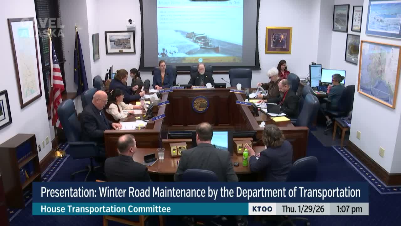 DOT told the House Transportation Committee it is using new data tools (511, RWIS cameras, AI-assisted alerts, Starlink) to improve winter response, defended targeted brine application with corrosion inhibitors and described local adjustments (Kenai reductions) after community petitions; committee pressed DOT on safety data, environmental impacts and staffing.