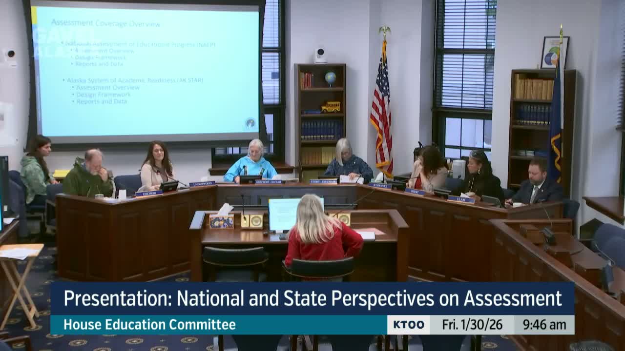 Kelly Manning, deputy director for the Division of Innovation and Education Excellence at the Alaska Department of Education and Early Development, and Karen Meline, DEED administrator for standards and assessment, briefed the House Education Committee on the AK STAR assessment design, reporting, and 2025 results.