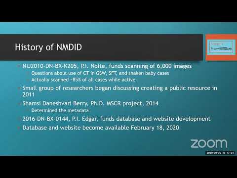 The University of New Mexico’s Office of the Medical Investigator and project lead Dr. Heather Egger on a webinar described the New Mexico Decedent Image Database (NMDID), an anonymized archive of whole-body CT scans and linked metadata intended for research.