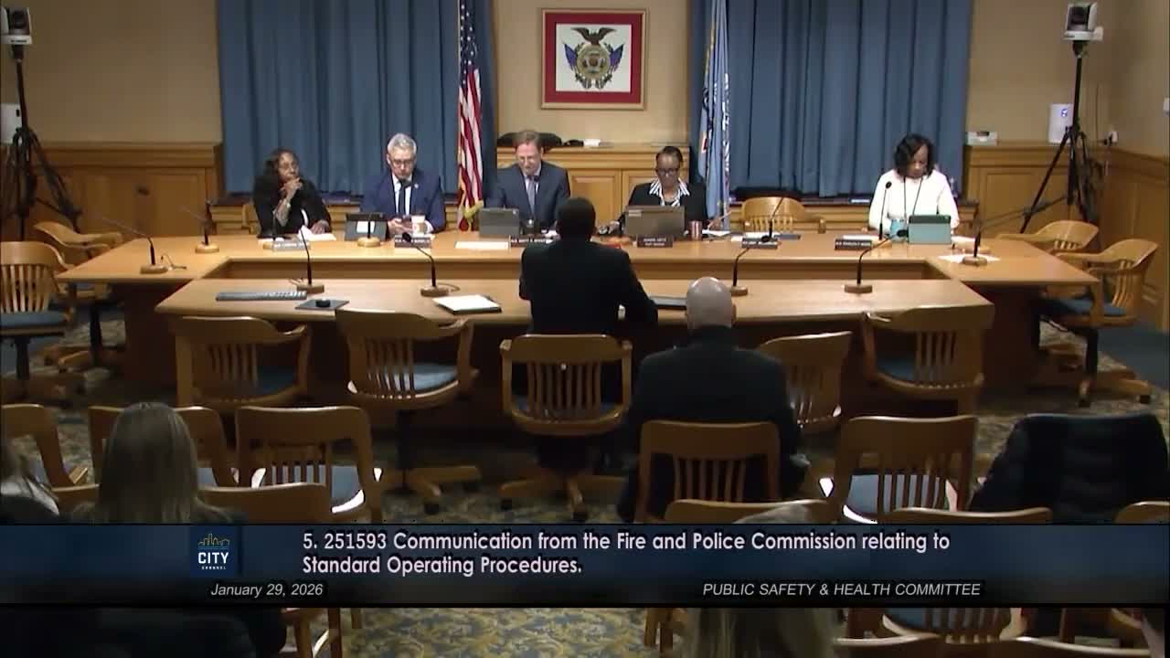 The Fire & Police Commission briefed the committee on six SOP changes including a new SOP about generative artificial intelligence meant to guide future procurement; committee members also expressed concern that a recently heard change to vehicle pursuit policy had limited time for oversight review and asked for earlier coordination on controversial SOPs.