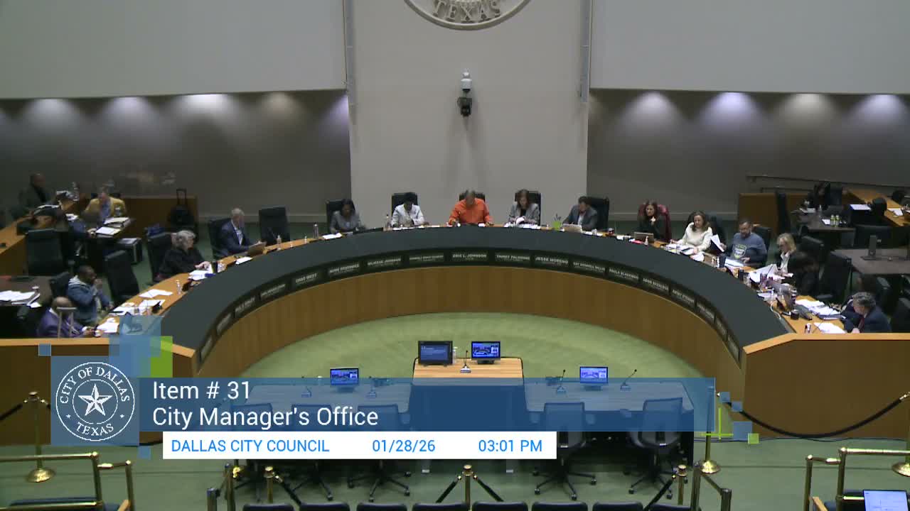 The council on Jan. 28 remanded a proposed Public Facility Corporation (PFC) project — a planned adaptive reuse of a former extended‑stay hotel at 6950 North Stemmons Freeway into 142 workforce‑housing units — to the Finance Committee for further review.